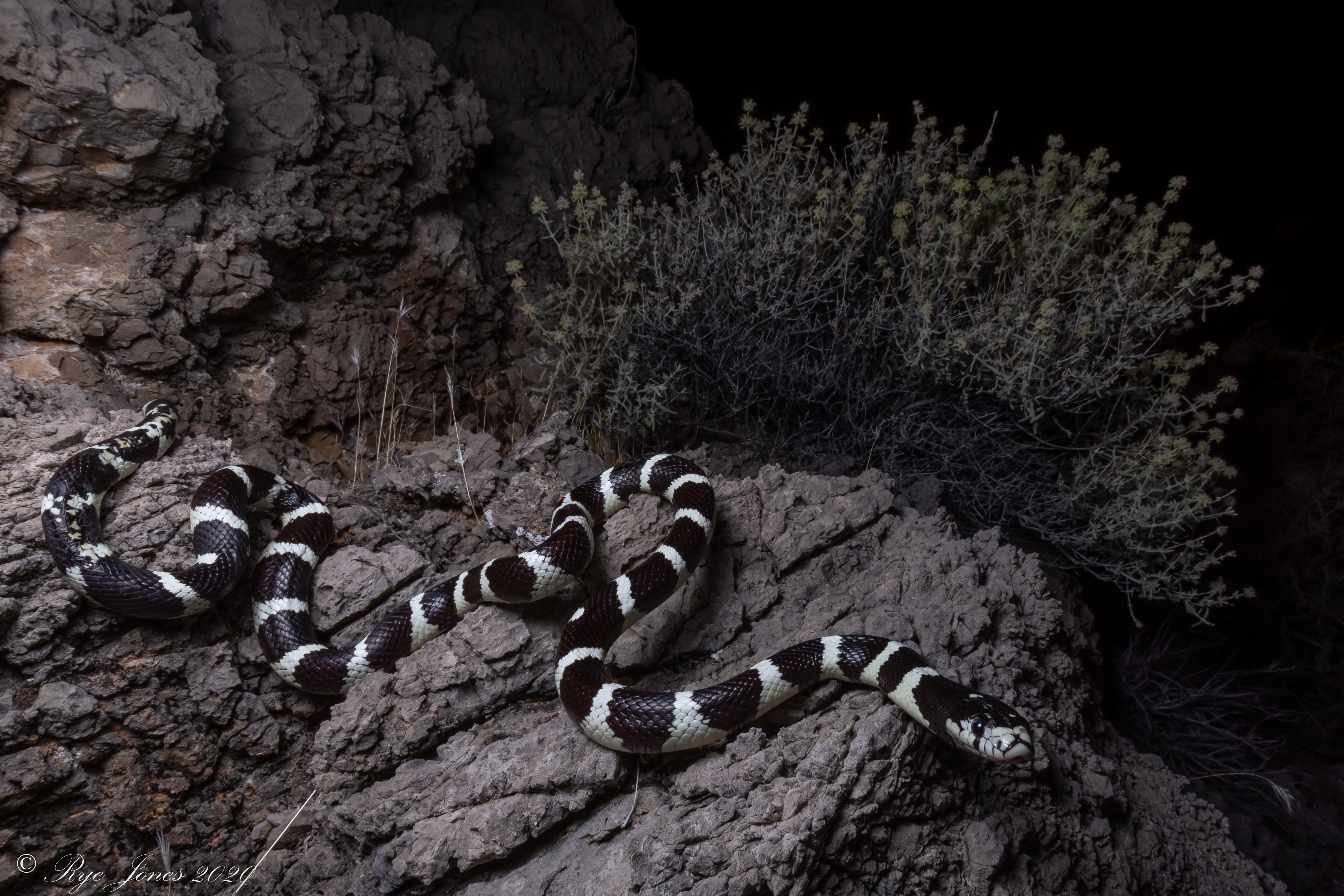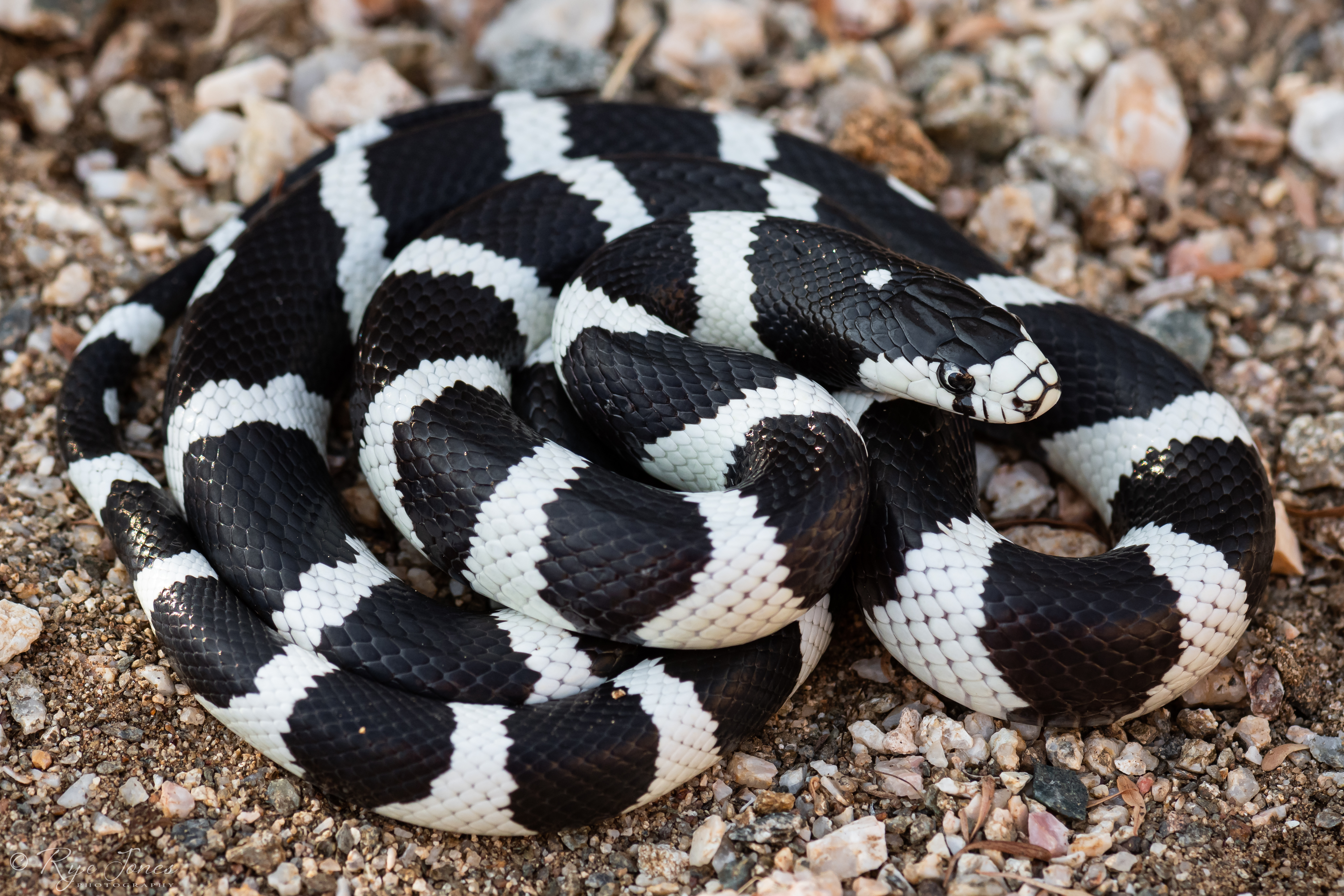Similar Species: The Utah Mountain Kingsnake, and Utah Milksnake, are banded but contain red bands in addition to the black and white bands.