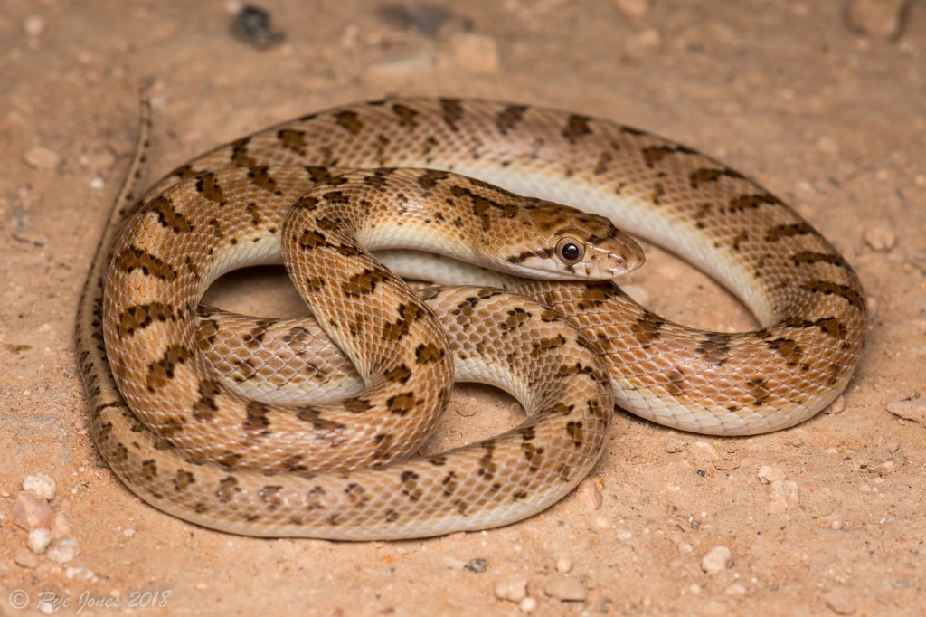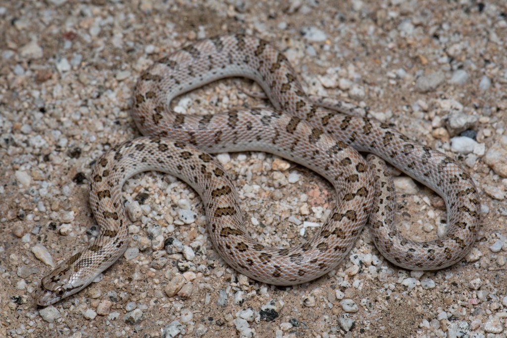 Description: Tan, gray, or cream base color with darker brown or orangish-brown blotches along the dorsal. This snake has a white, patternless ventral, round pupils and smooth, shiny scales. Juveniles typically have a bolder pattern that fades as they age.