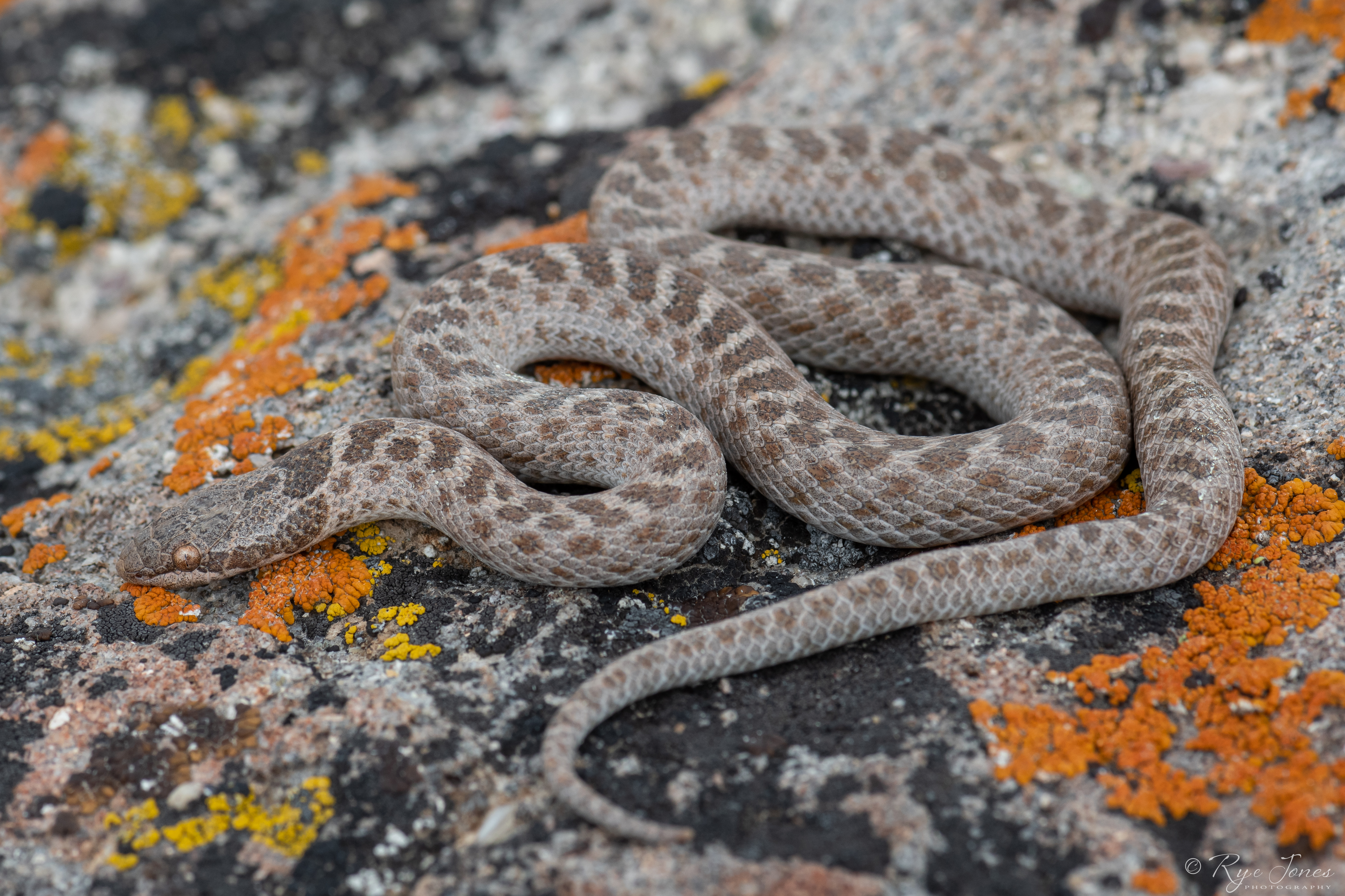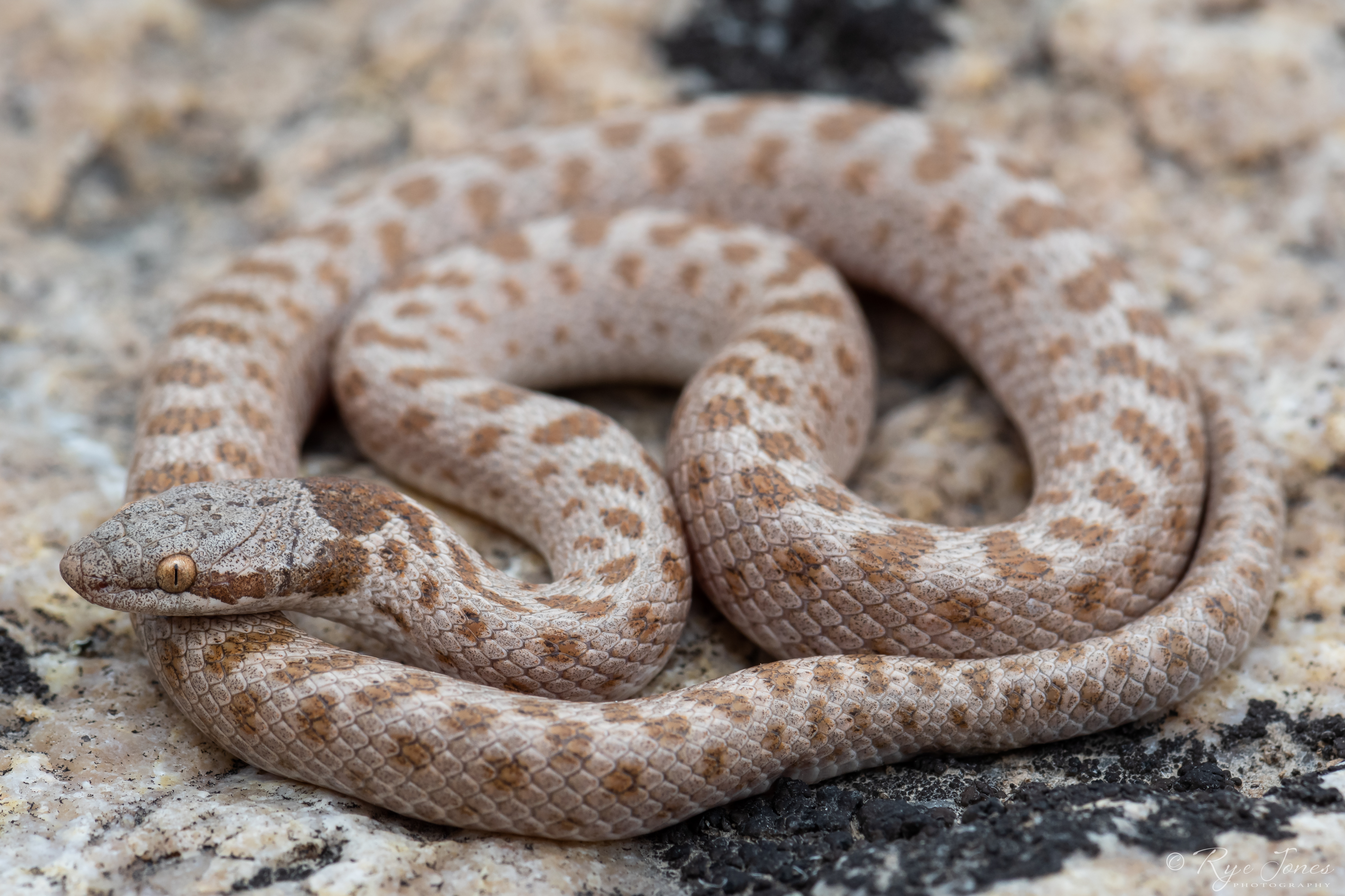 Description: A smooth-scaled snake with a base color of tan, brown, or gray. Base color often matches the surrounding substrate. Blotches darker than the base color run along the dorsal and are usually tan, brown or orangish-brown in color. The blotches can sometimes be split and offset giving the dorsal pattern a checkered look.