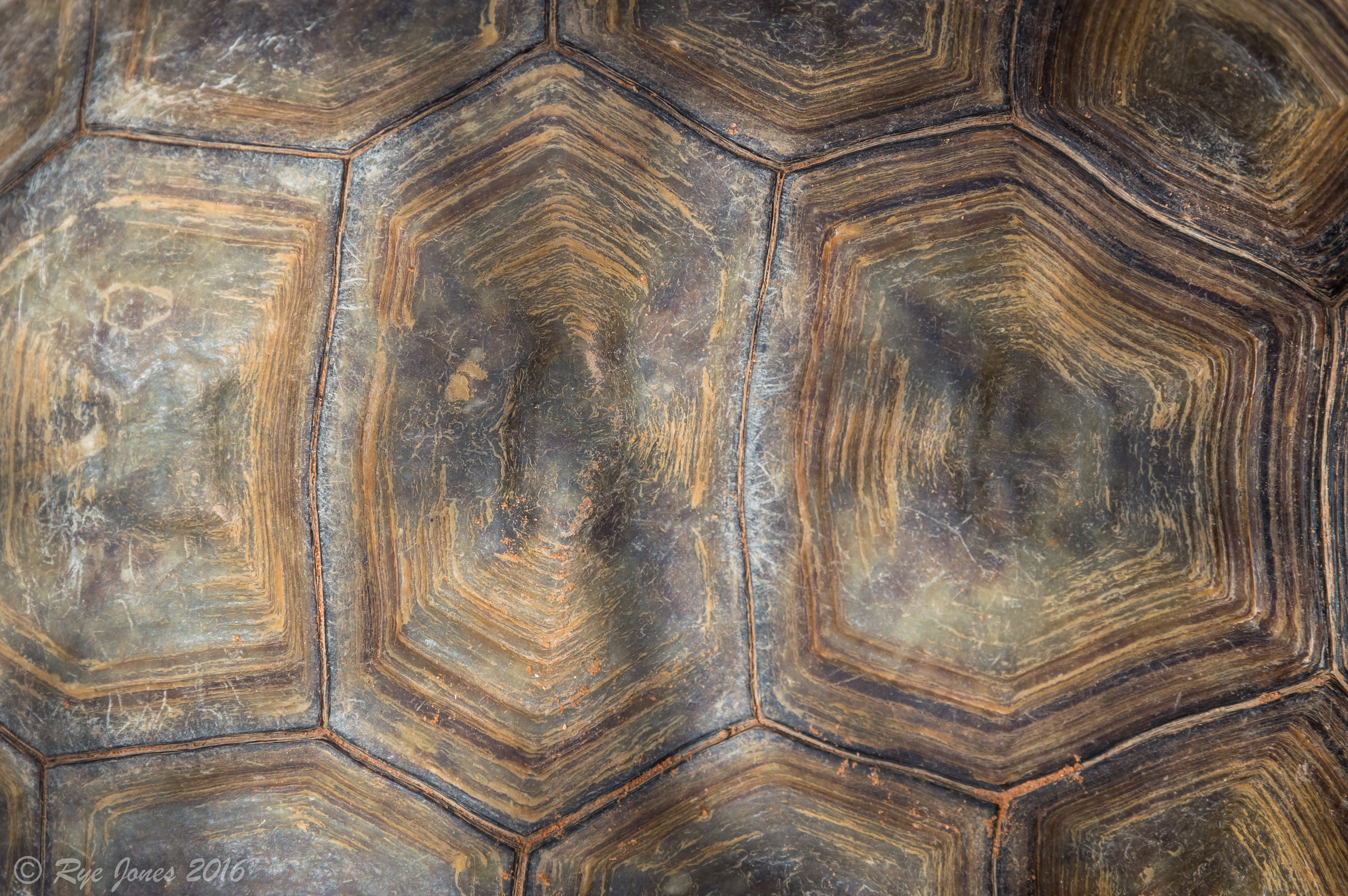 Description: A high domed, flat-topped shell with large scutes. The carapace, head, limbs and tail are tan, brown, or grayish-brown in color. The plastron is yellow or tan in color. The scutes are typically light-centered in juveniles. Large flat rear feet and flattened forelimbs with thick scales. The head is round and the neck is short. Males have well developed gular shields, chin glands, a concave carapace, and a thicker tail.