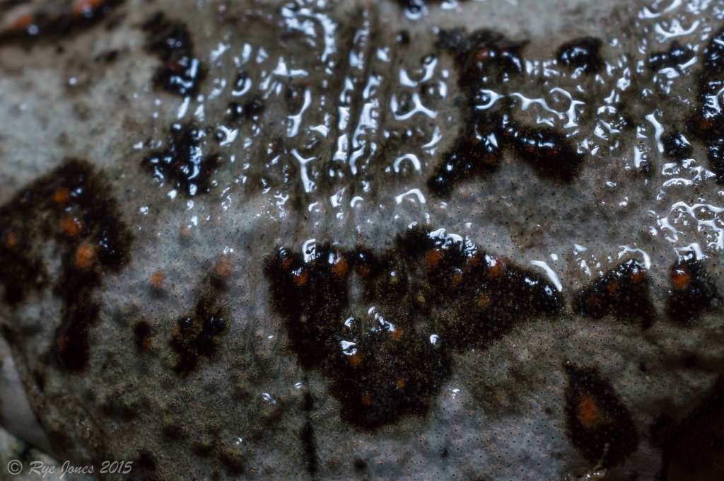 Call: A loud repeated “gwaaa” or snores in 1 to 2 second intervals. The vocal sac is slightly bilobed.