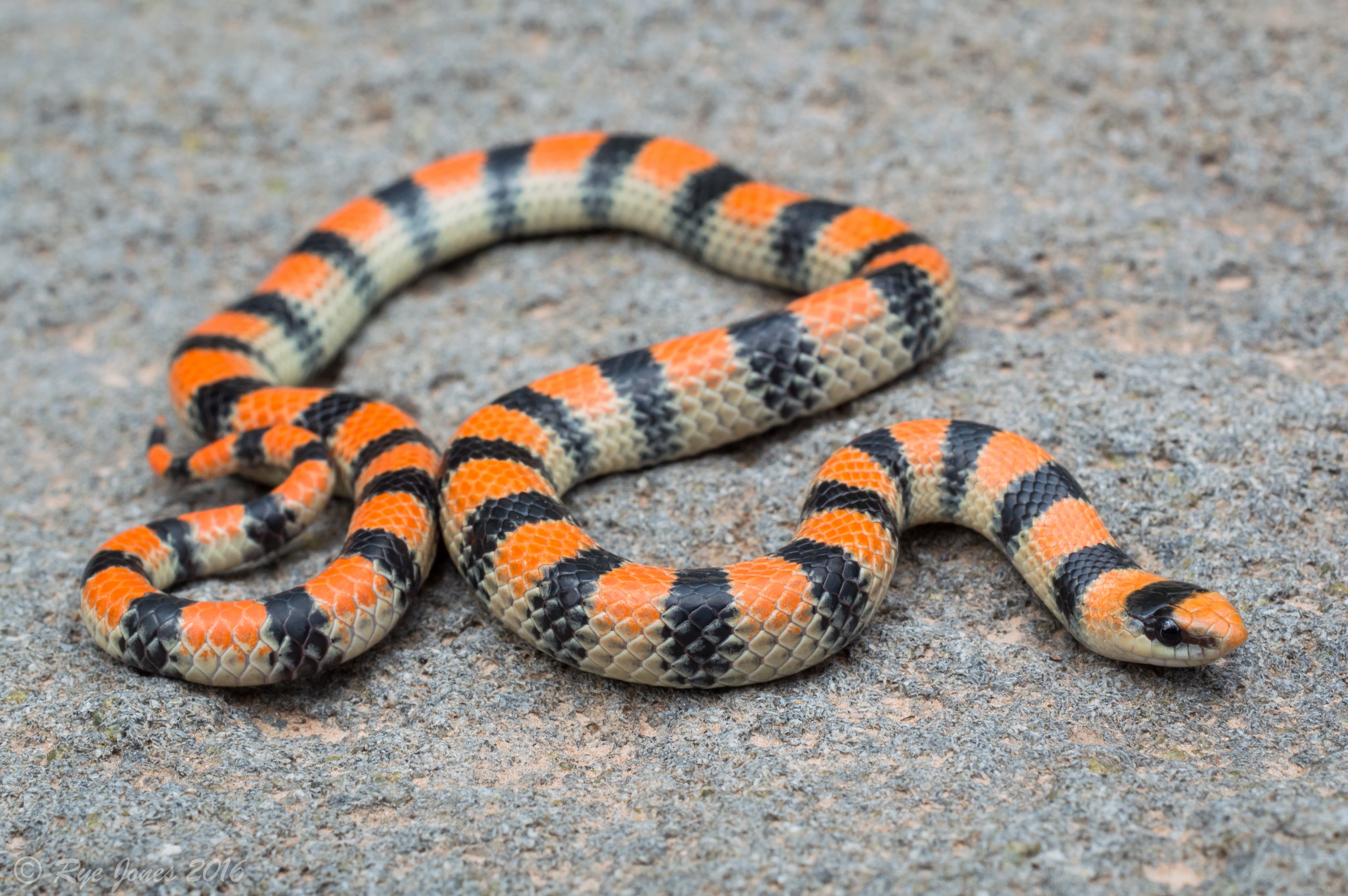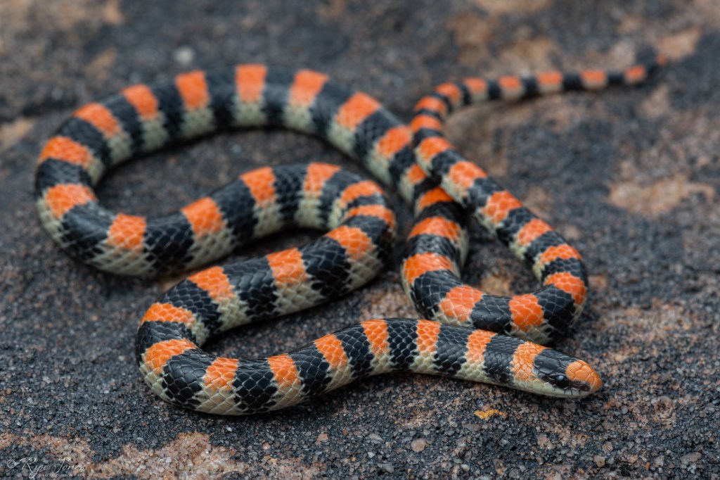 Description: Black bands with orange in between the bands on the dorsal. The sides in between the black bands are cream or pale in color. The head is only slightly wider than the neck. This snake is fossorial and has smooth shiny scales. This snake is highly variable throughout its entire range, but in Utah, the black and orange banded variety is the only documented color variation at this time.