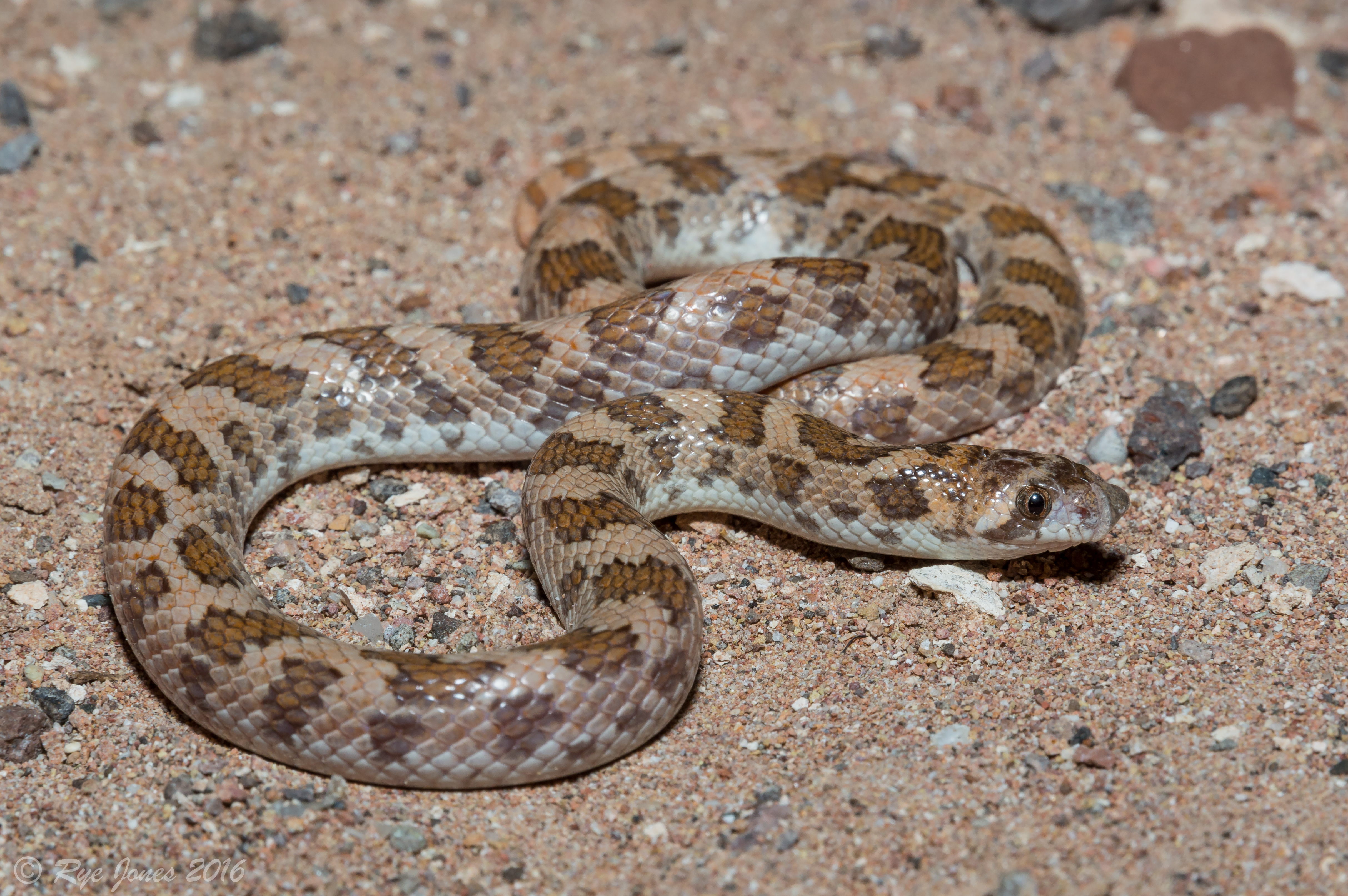 Similar Species: The Mojave Patch-nosed Snake has an enlarged rostral scale but is striped.