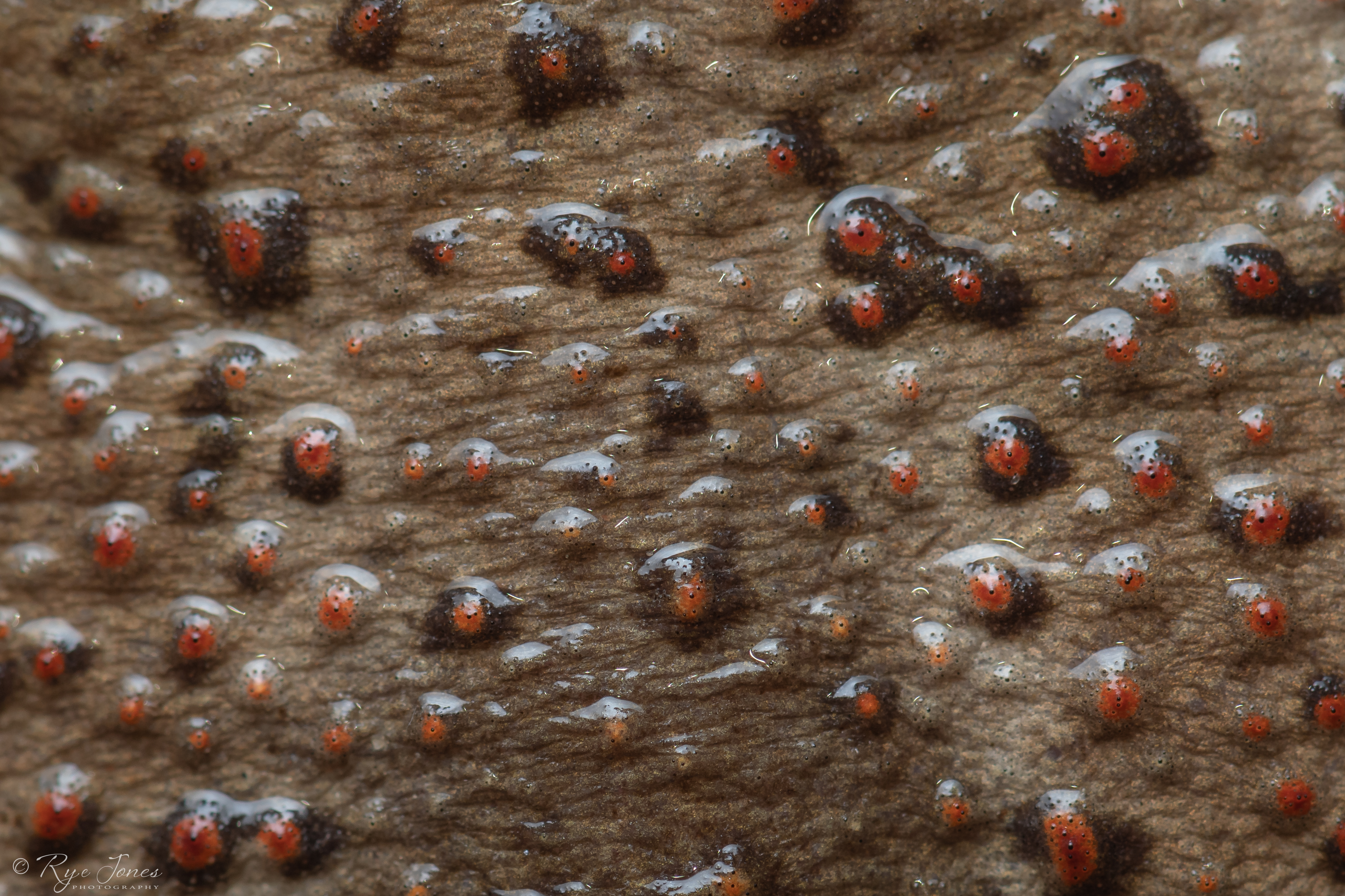 Description: Gray, cream, or tan base color. Scattered dark spots on the dorsal; several of which have orange or red centers. No boss between the eyes. The underside is white or cream-colored. The underside of each rear foot has a bony wedge-shaped spade. This species can have a peanut butter-like smell when handled.