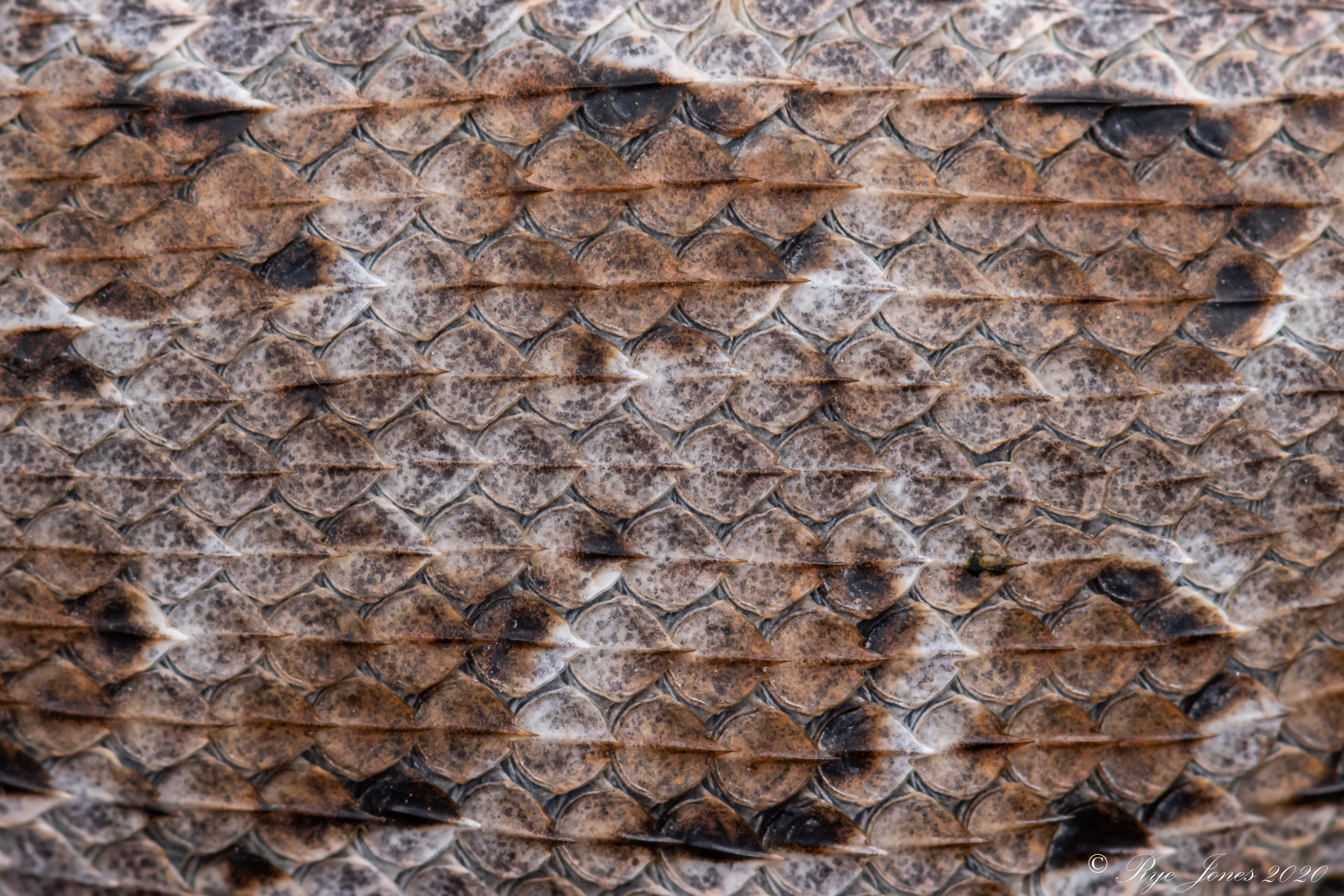 Description: Brown, tan, or grayish-brown base color, occasionally with blue speckling on the body and tail. A broad grayish-brown or bluish-gray stripe runs down the mid-dorsal. It is bordered by irregular dark brown blotches; sometimes appearing as dark stripes. Light-colored cream or tan dorsolateral and/or lateral stripes on each side of the dark blotches. There is often a dark bar on the anterior shoulder. The scales are keeled and pointed, giving them a spiny appearance. The scales on the back of the thighs are granular and/or unkeeled. Males have blue patches on each side of the abdomen and a blue throat patch. Females usually lack any blue coloration and can develop orange coloration on the neck and sides during breeding season and when gravid.