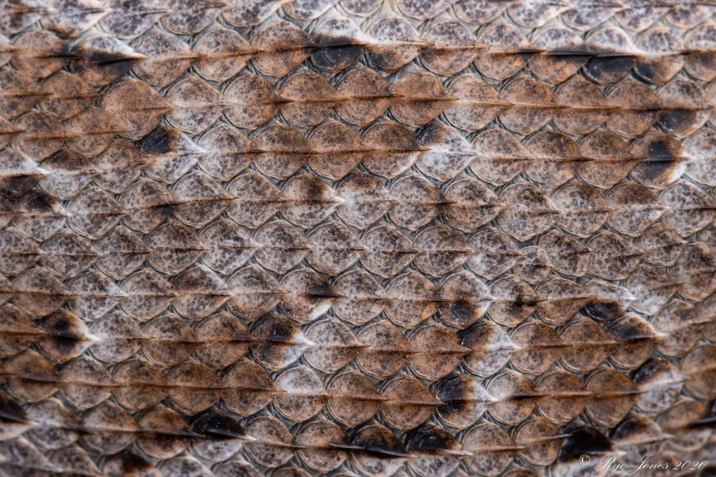 Description: Brown, tan, or grayish-brown base color, occasionally with blue speckling on the body and tail. A broad grayish-brown or bluish-gray stripe runs down the mid-dorsal. It is bordered by irregular dark brown blotches, sometimes appearing as dark stripes. Light-colored cream or tan dorsolateral and/or lateral stripes on each side of the dark blotches. There is often a dark bar on the anterior shoulder. The scales are keeled and pointed, giving them a spiny appearance. The scales on the back of the thighs are granular and/or unkeeled. Males have blue patches on each side of the abdomen and a blue throat patch. Females usually lack any blue coloration and can develop orange coloration on the neck and sides during the breeding season and when gravid.