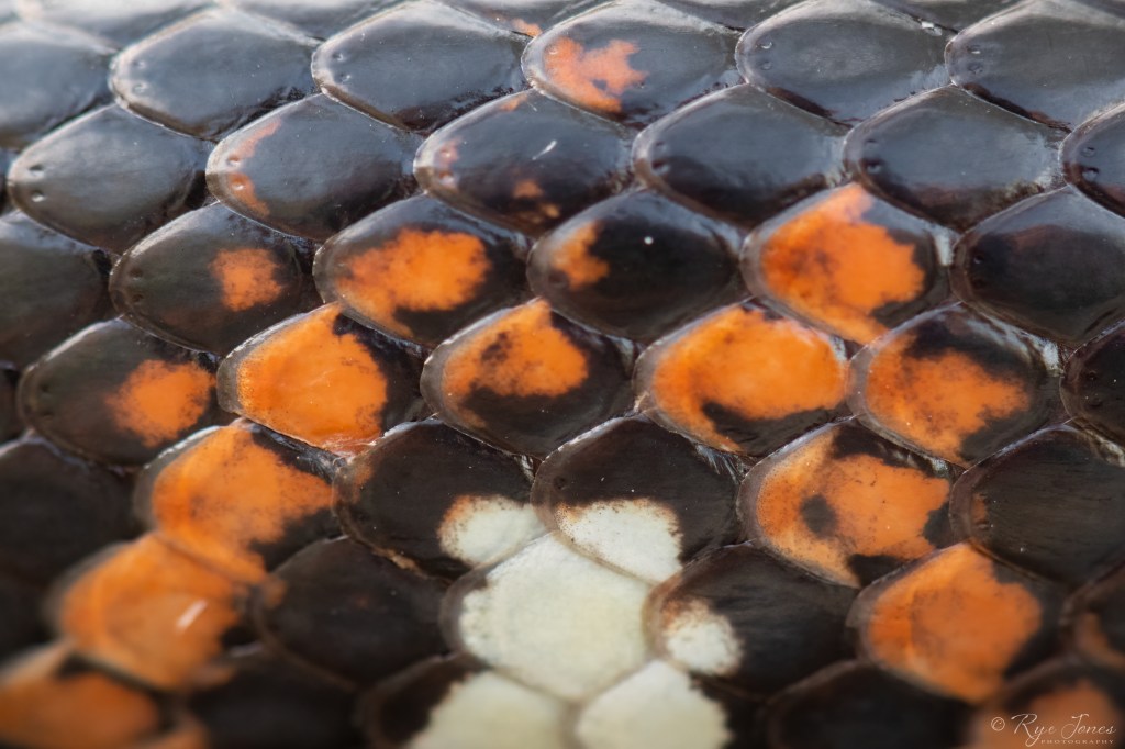 Description: A banded snake with alternating red, black, and white bands. Sometimes the red is replaced by orange, and the white is replaced by yellow or cream. The bands and color extend around the ventral of the snake. This snake has smooth scales. It is primarily fossorial in nature and spends the majority of its life underground.