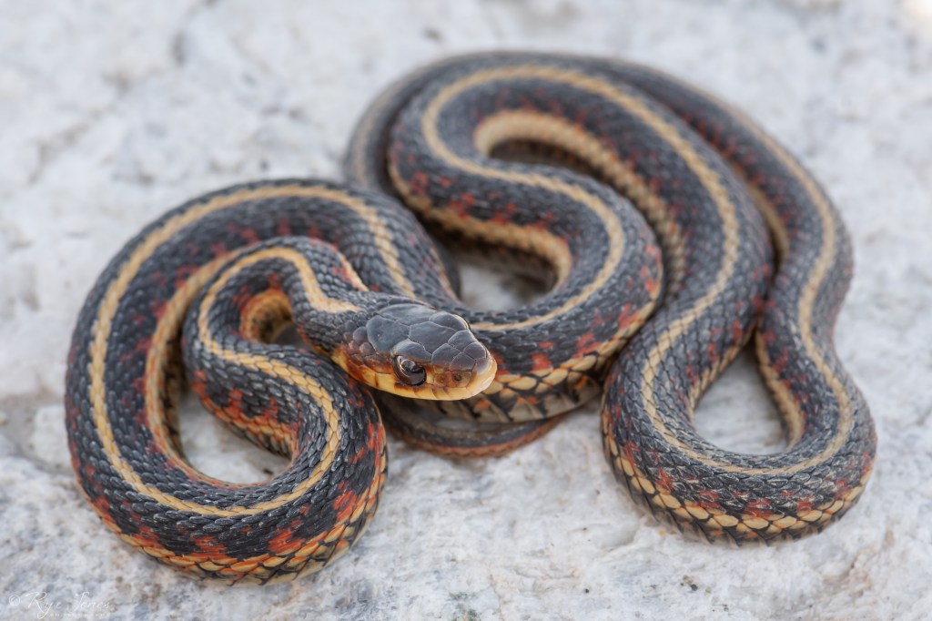 Similar Species: The Wandering Garter Snake lacks red coloration and has 8 upper labial (lip) scales. The Black-necked Garter Snake lacks red coloration, has distinct neck blotching, and does not overlap in range.
