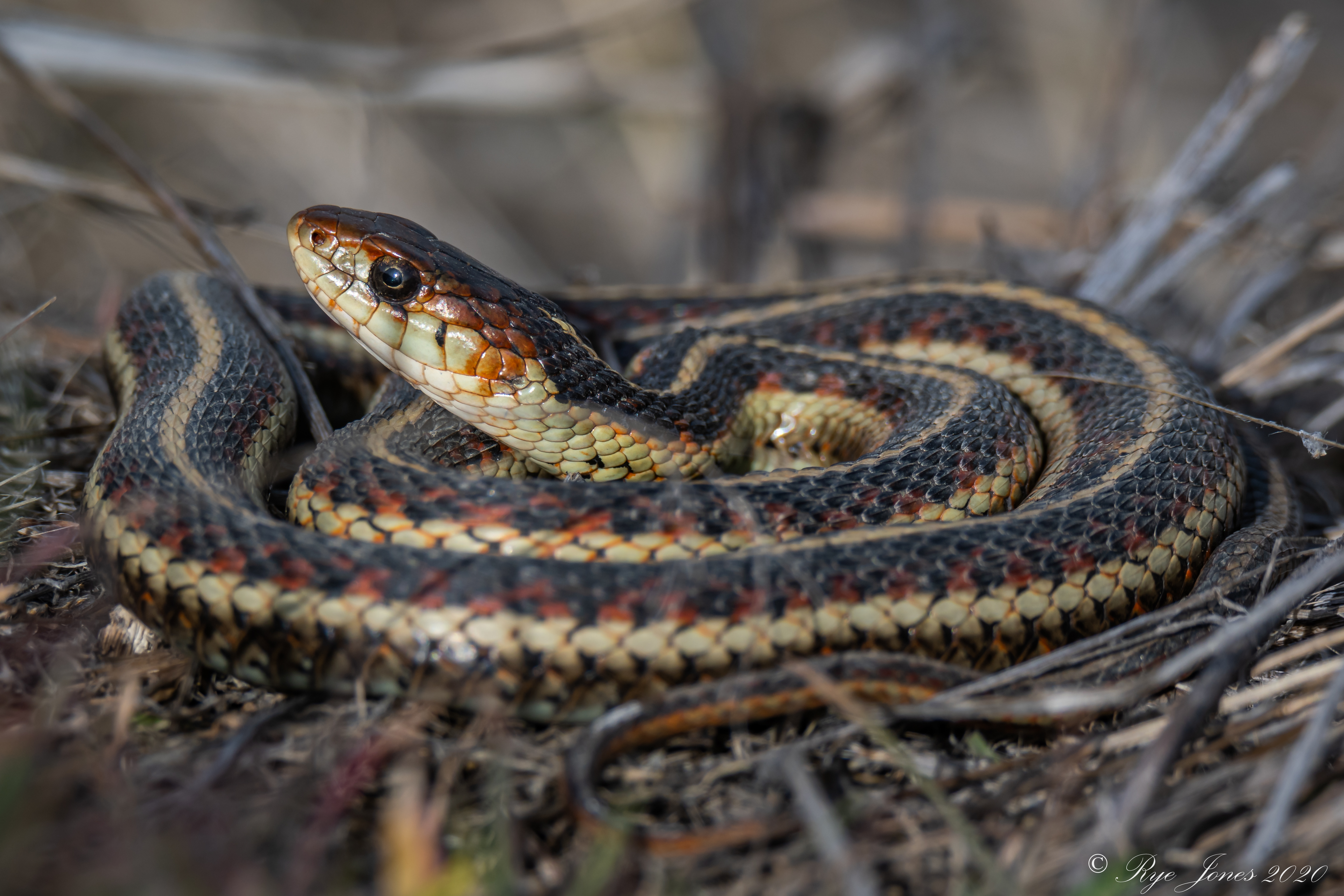 Similar Species: The Wandering Garter Snake lacks red coloration and has 8 upper labial (lip) scales. The Black-necked Garter Snake lacks red coloration, has distinct neck blotching, and does not overlap in range.