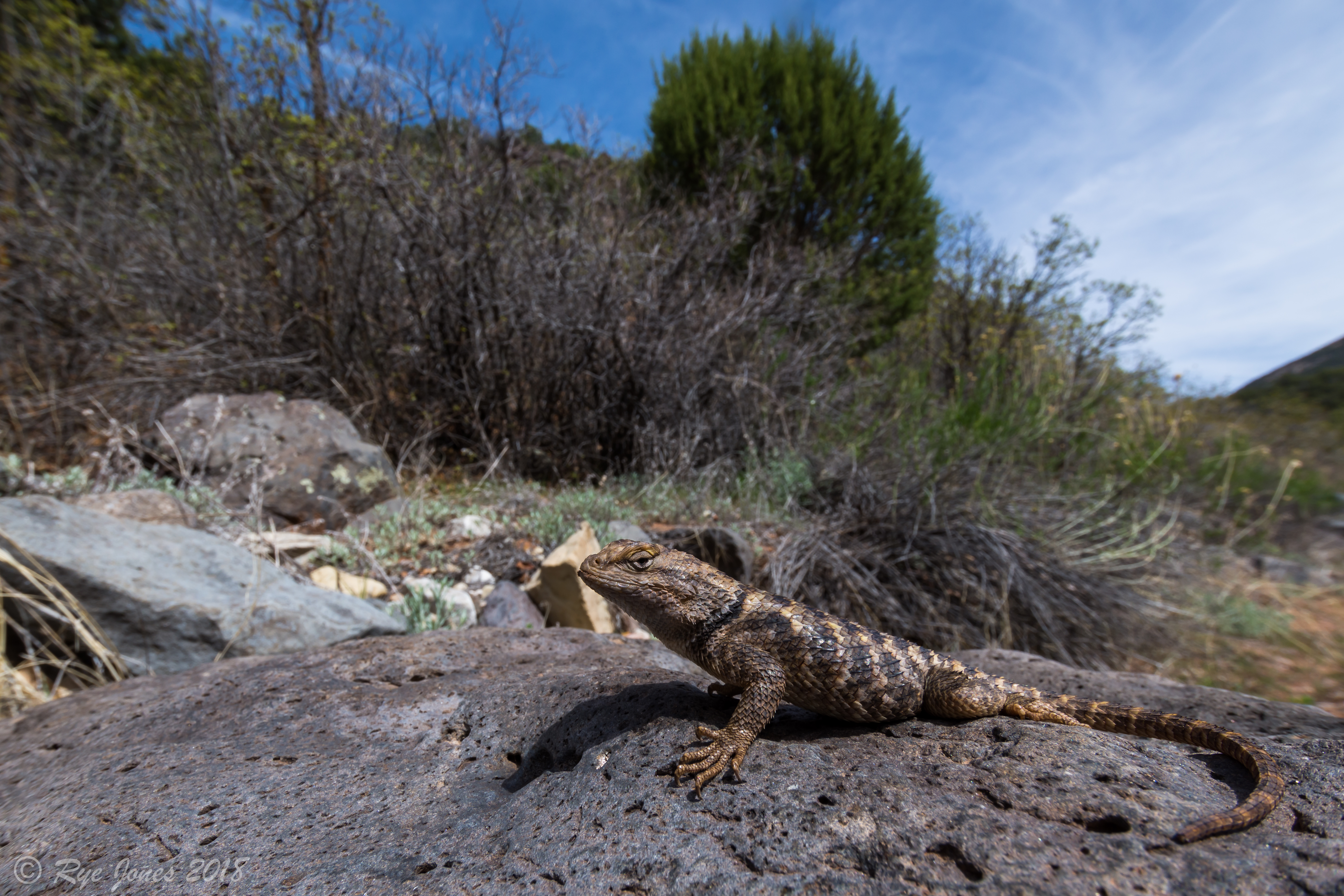 Range and Habitat: This lizard occurs mostly through Southern Washington County in the Mojave Desert and its transition zones. It inhabits Mojave desertscrub, juniper-pinyon woodlands, and riparian habitat. It is often found on cottonwood trees when they are present. It can be found up to 5,500 feet in elevation.